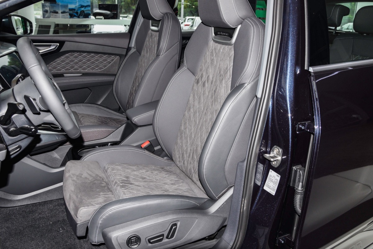 У випадку моделі Audi Q4 Sportback e-tron додатково хочеться відзначити «купе»-подібний профіль даху з заваленими задніми стійками і виділеним антикрилом. З урахуванням великих дисків – а для всіх версій Audi Q4 e-tron та Audi Q4 Sportback e-tron запропоновані лише 19-20-21-дюймові диски – електрокар і справді виглядає спортивно та динамічно. Сучасний, дорогий, стильний електромобіль, який наповнений енергією та якоюсь прямою «бадьорістю духу».