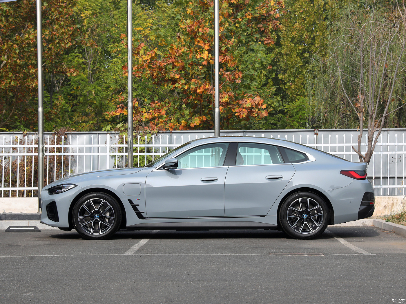 Экстерьер нового BMW i4 отличается элегантностью пропорций и спортивным характером. Длинная колесная база в сочетании с короткими свесами кузова и наклонной линией крыши подчеркивает приземистый силуэт. Безрамочная конструкция двери и тонкие стойки крыши не только улучшают обзорность, но и усиливают ощущение управления спортивным автомобилем BMW.
