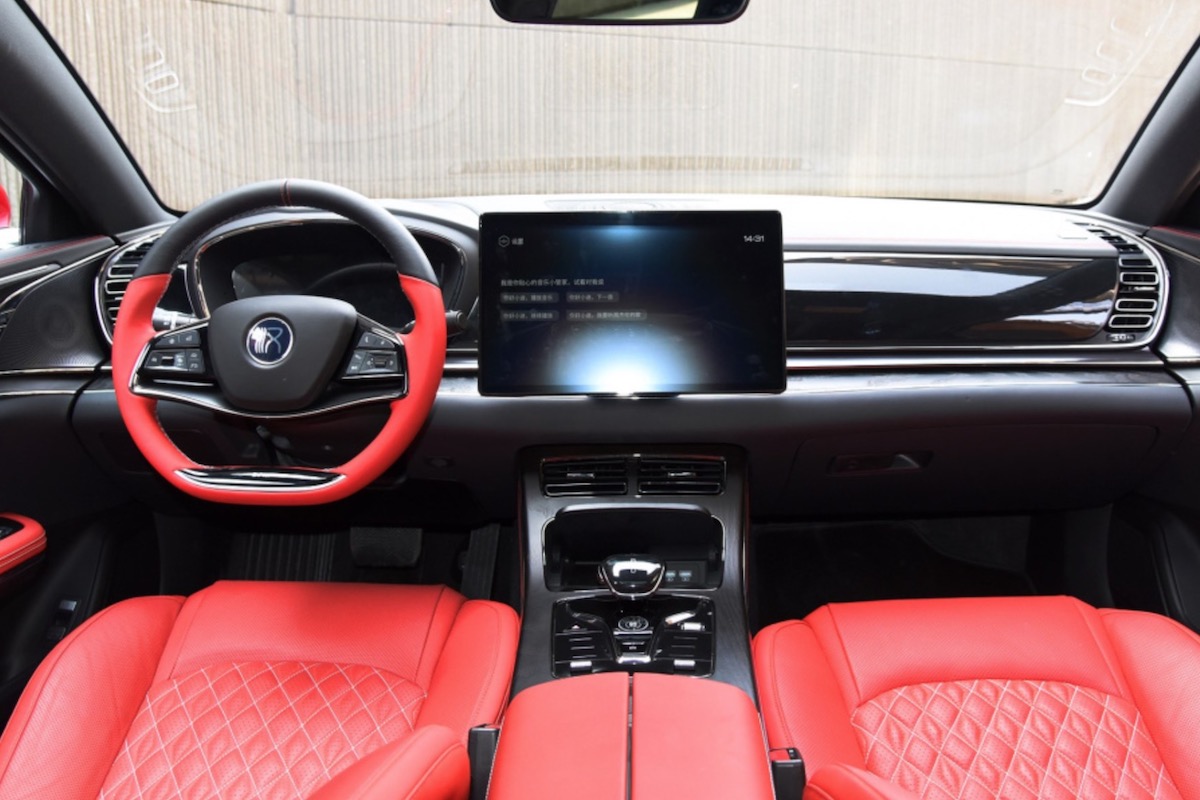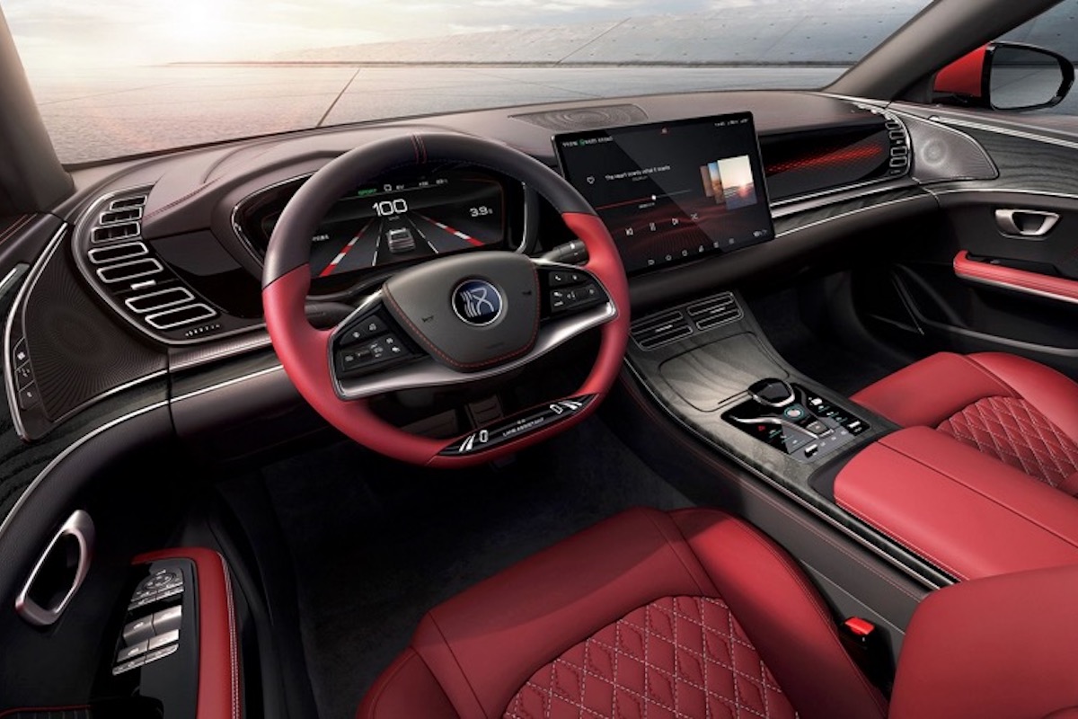 При цьому передня частина кузова електричної та гібридної модифікацій досить сильно відрізняються одна від одної: у таких авто різні бампера, крила, капот і навіть форма фар. Збоку ж автомобіль привертає увагу стрімким і атлетично складеним кузовом з коротким «хвістом» багажника. До речі, через останні чотиридверки більше схоже на ліфтбек ніж на традиційний седан. Розробники з гордістю рапортують, що коефіцієнт лобового опору новинки лише 0,233. Інакше кажучи, за аеродинамікою модель з Піднебесної нічим не поступається Audi A4 і Tesla Model 3. Салон BYD Han 2022 відноситься до преміум-класу, тому салон чотиридверки оброблений переважно дорогими матеріалами, серед яких шкіра Наппа, а також декоративні вставки з алюмінію та натурального. дерево. Головною особливістю інтер’єру є 15,6-дюймовий тачскрин мультимедійної системи. Він зроблений поворотним, тобто його можна використовувати як горизонтальному, так і вертикальному положенні. До речі, розгортати вручну його не потрібно – все робиться зі спеціальної кнопки на кермі. Плюс флагманській чотиридверці покладено 12,3-дюймову цифрову приладку, а у відкидному підлокітнику заднього дивана знаходиться ще один планшет, з якого пасажири другого ряду можуть керувати музикою, кліматом та цілим рядом інших функцій.